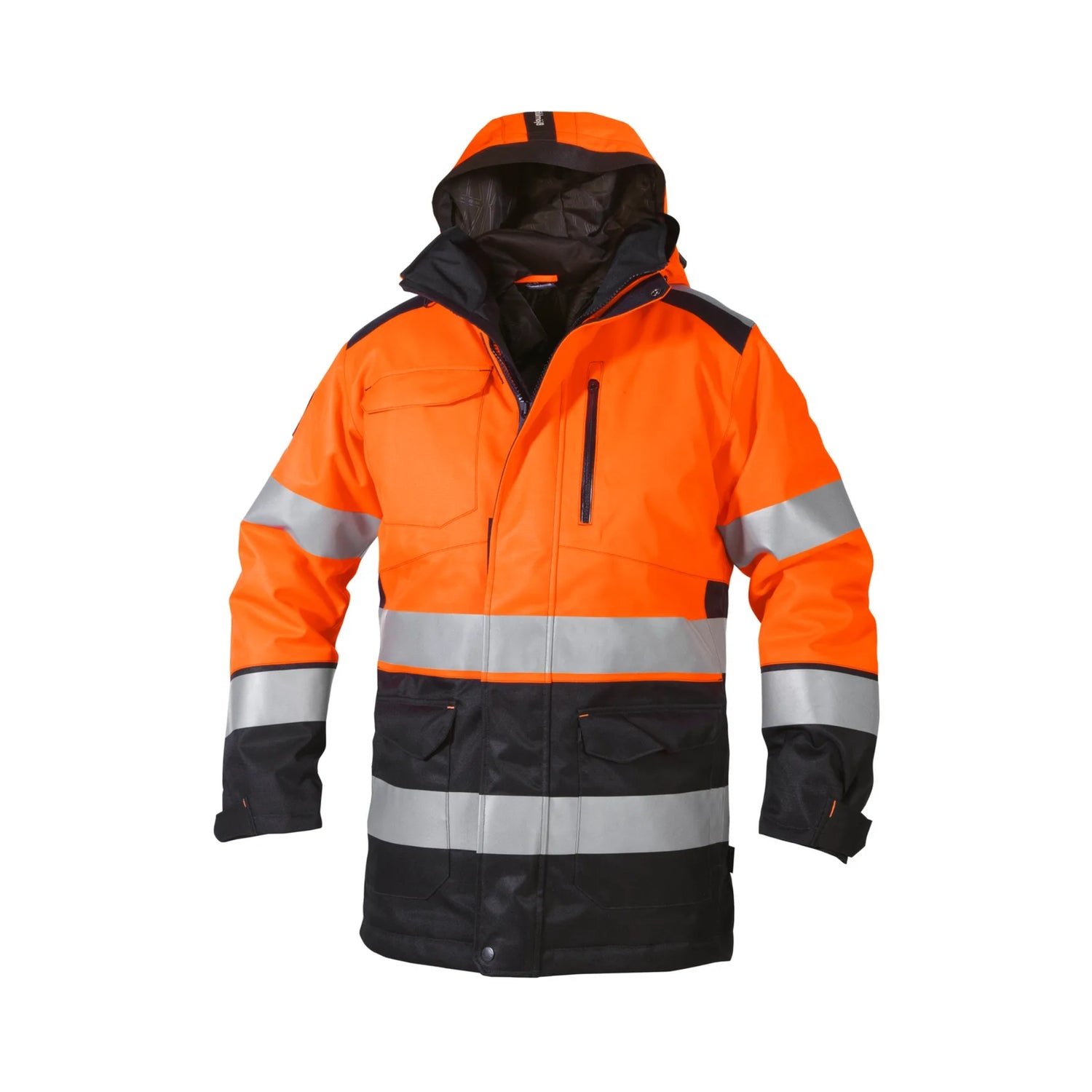 Sertifisert etter EN ISO 20471 klasse 3, EN 343 og EN 342, er dette en arbeidsparkas fra Björnkläder som kombinerer synlighet, beskyttelse og slitestyrke – perfekt for krevende vinterforhold.