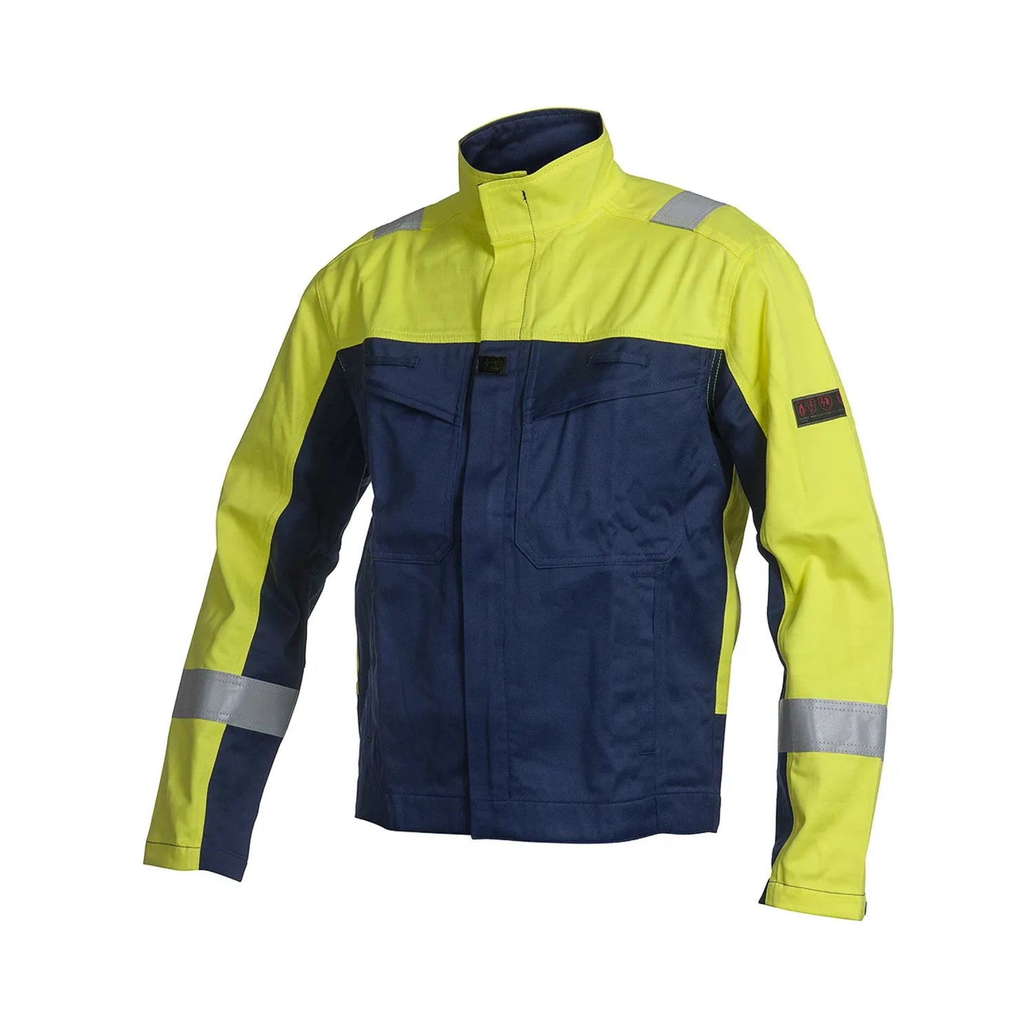 Jakken har skjult glidelås, og alle glidelåser og knapper er laget i flammehemmende plast for økt sikkerhet. Kontrastmaterialet og de påsydd flammehemmende refleksene gir god synlighet og økt trygghet i arbeidssituasjoner med dårlig lys.