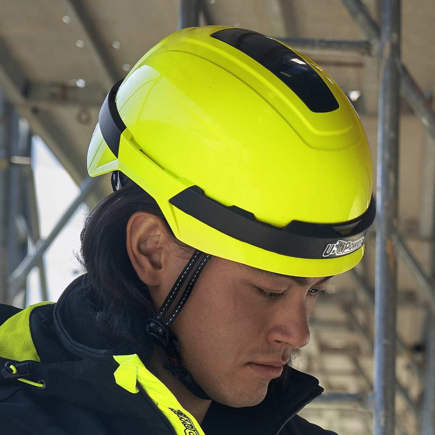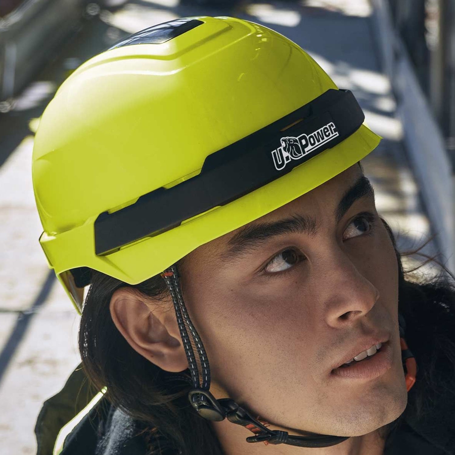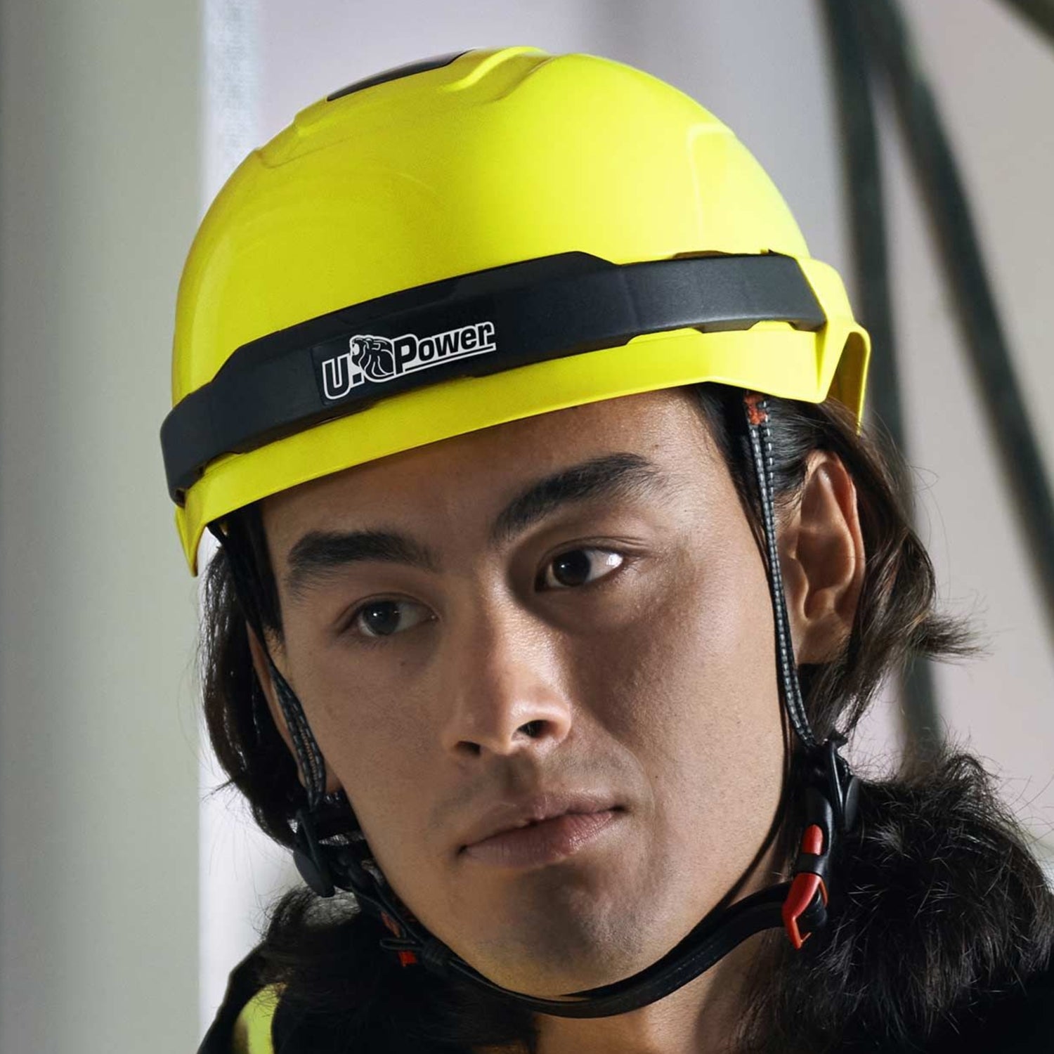 Denne lette vernehjelmen i fluoriserende gul fra U-Power er utviklet for arbeid der sikkerhet, komfort og synlighet er avgjørende. Den sterke signalfargen gjør hjelmen godt synlig på arbeidsplassen, noe som øker sikkerheten ved arbeid innen bygg, industri, skogbruk og veiarbeid.