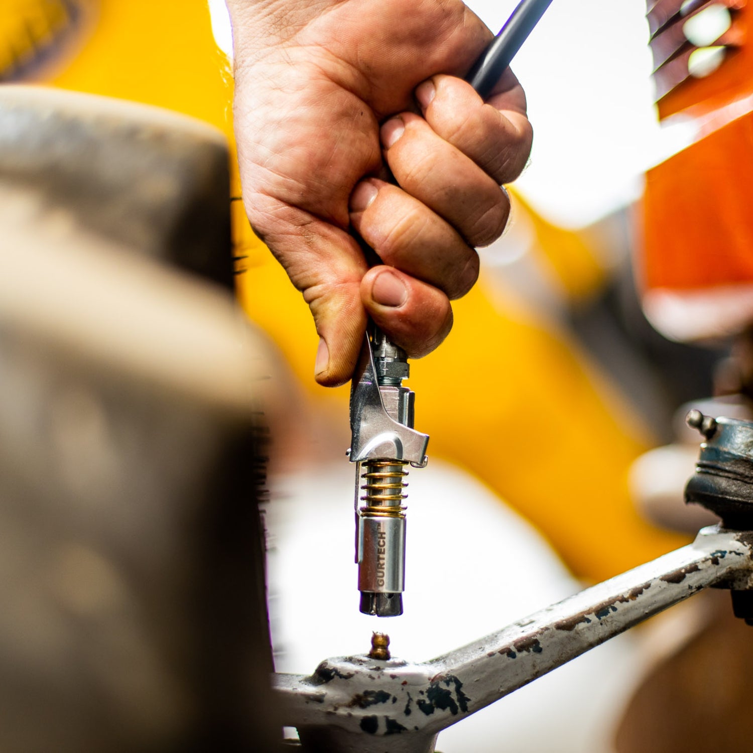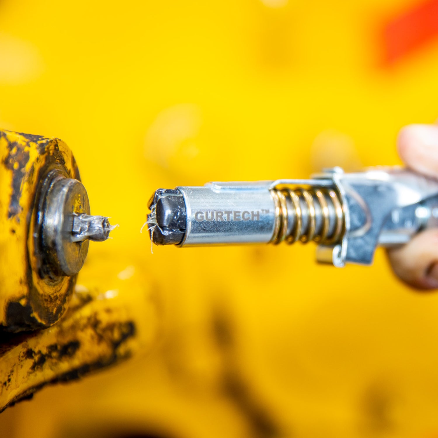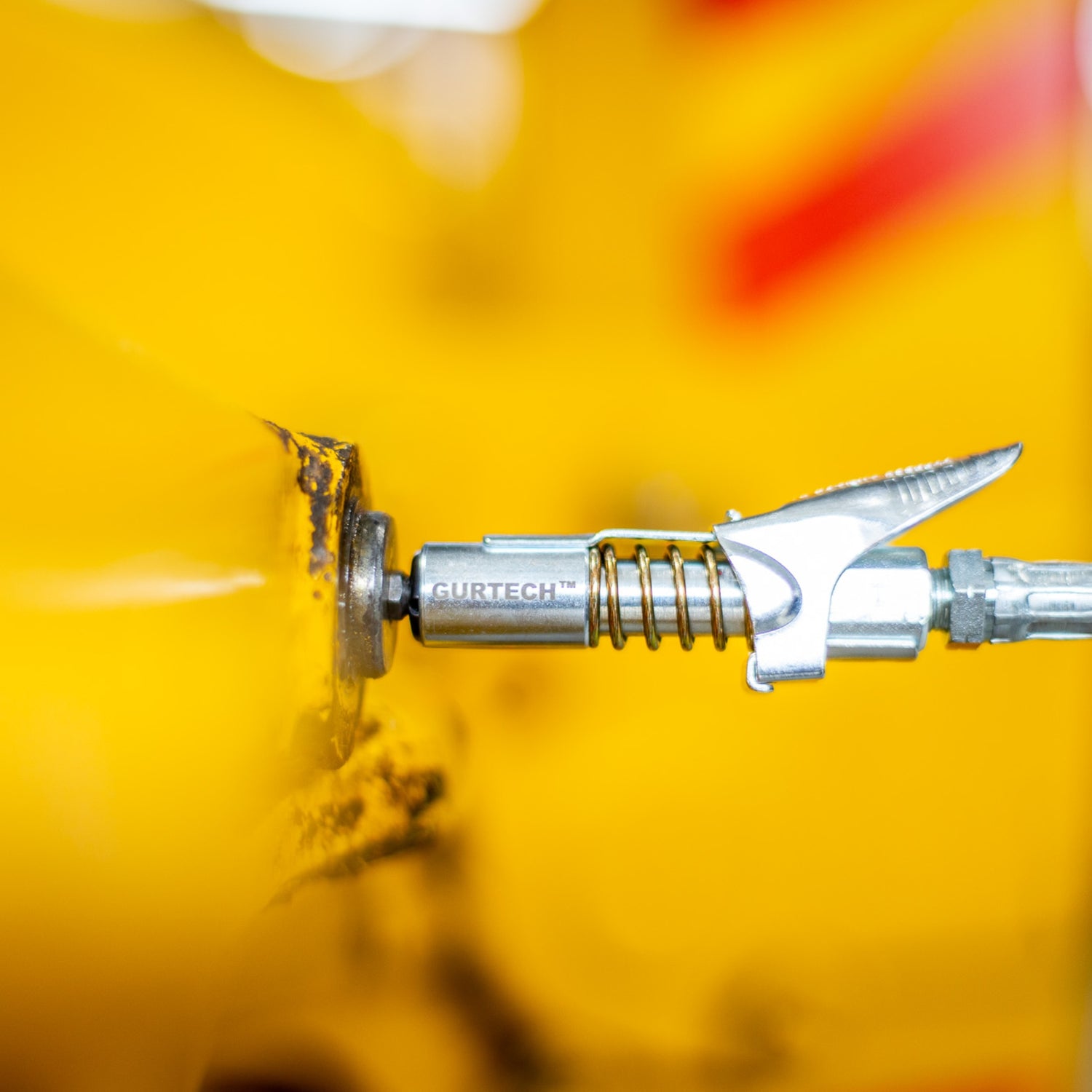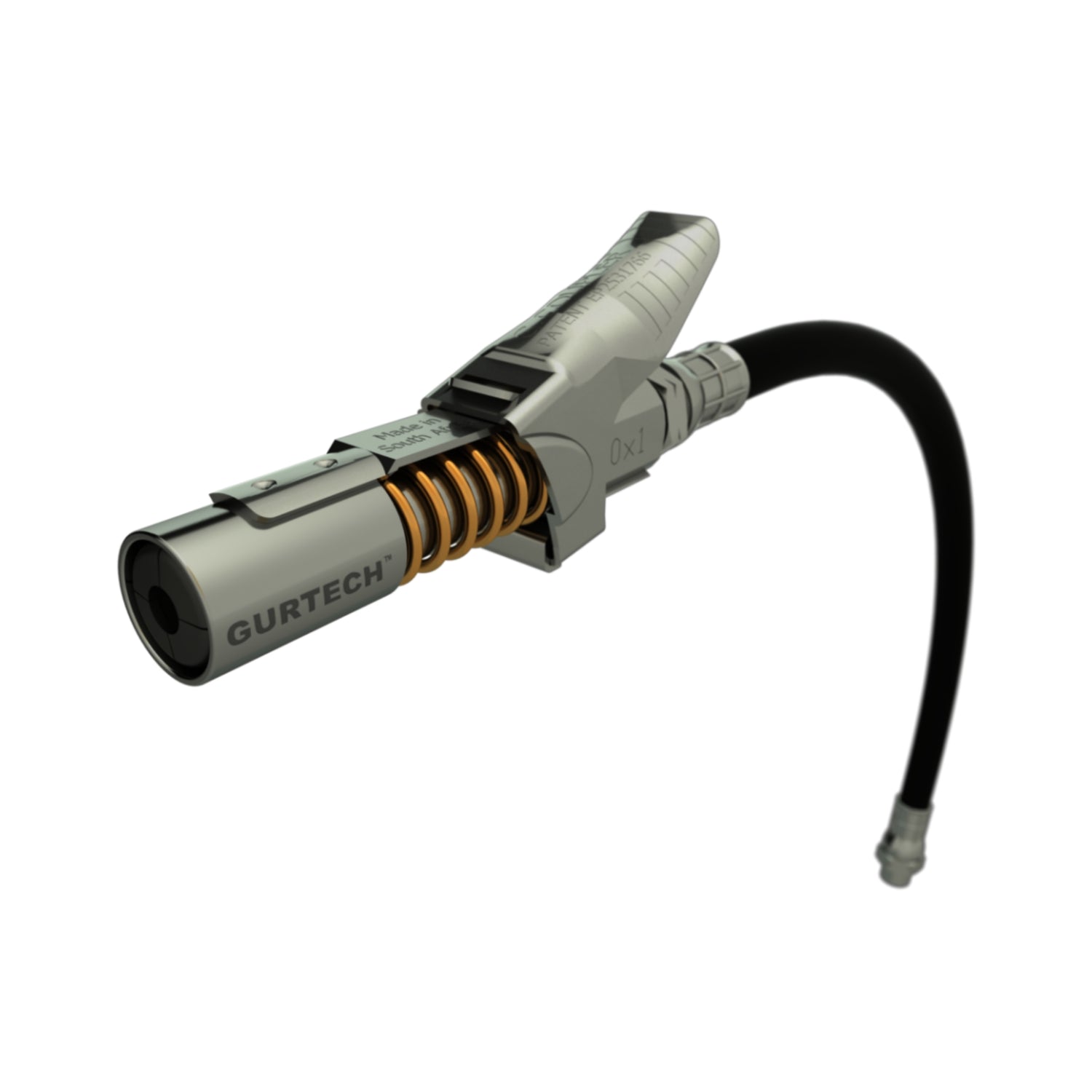 Den låsbare hurtigkoblingen fra Gurtech er utviklet for profesjonelle som ønsker en rask, sikker og lekkasjefri tilkobling til fettpresser – uten behov for å holde koblingen på plass under bruk. Med et enkelt trykk låses koblingen fast på smørenippelen, og den tåler et ekstremt arbeidstrykk på opptil 10 000 psi (690 bar). Dette gjør den ideell for industri, verksted, landbruk, anleggsmaskiner og annet krevende vedlikeholdsarbeid.