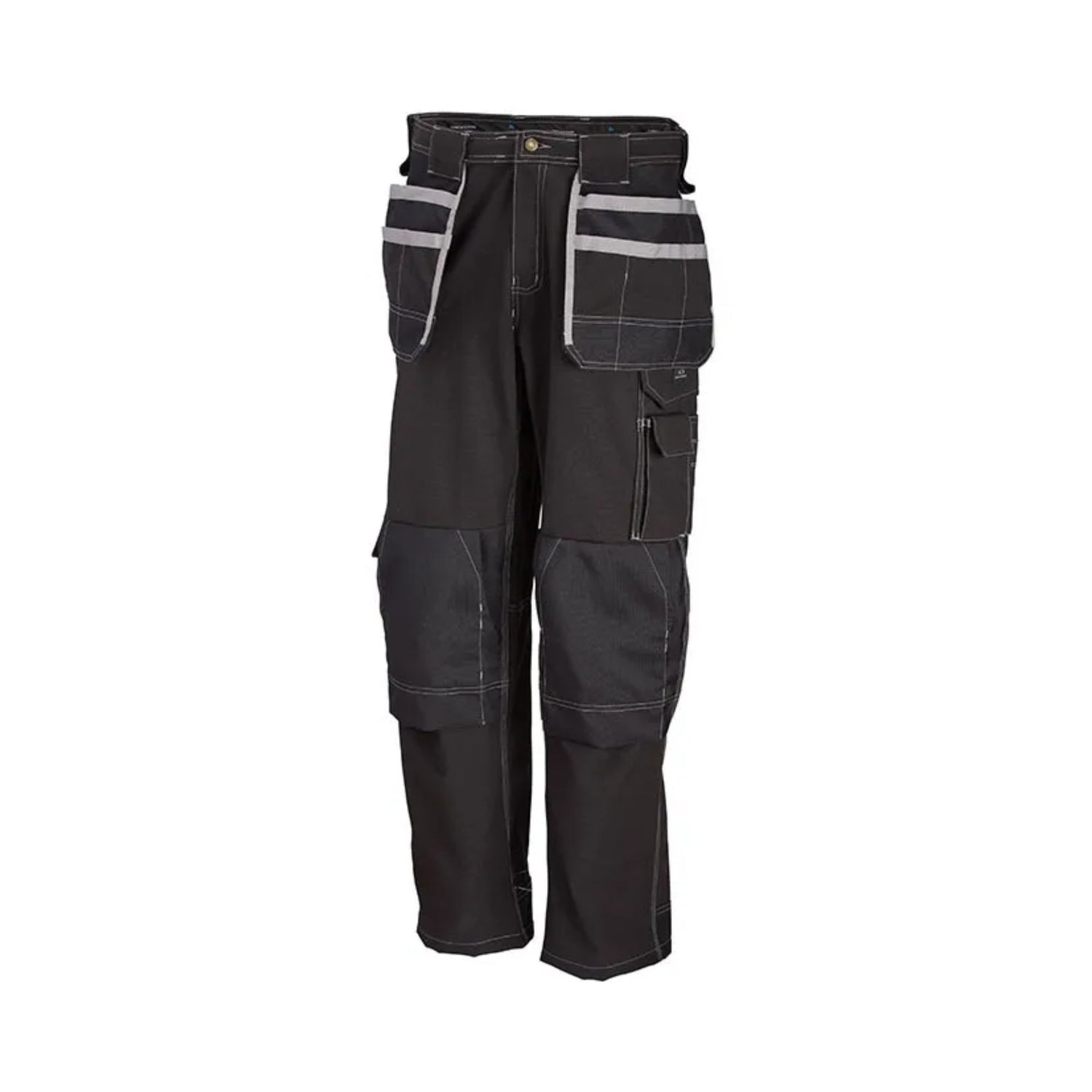Med to baklommer, to framlommer, dobbel lårlomme med egen mobiltelefonlomme, samt dobbel tommestokklomme, gir buksen rikelig med oppbevaringsplass. De kraftige beltestroppene og to borrelåsfester for hammerholder sørger for trygg og praktisk verktøyhåndtering.