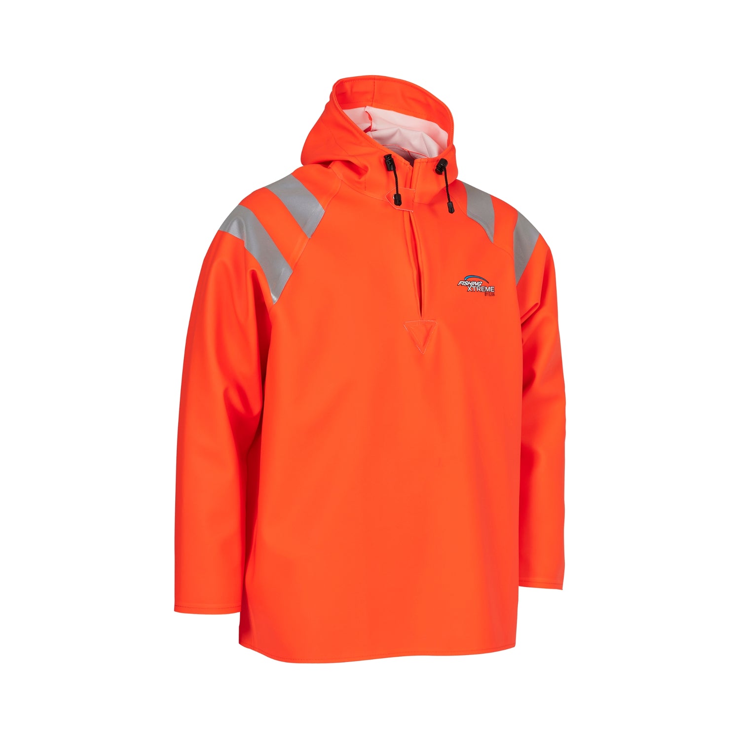 Materialet er både kuldestandig og fiskeoljeresistent, noe som gjør plagget ideelt for industrifiske og annet krevende arbeid. En justerbar hette, trykknapp i halsen og raglan-ermer gir optimal bevegelsesfrihet og komfort – selv når du jobber i tunge og våte omgivelser.